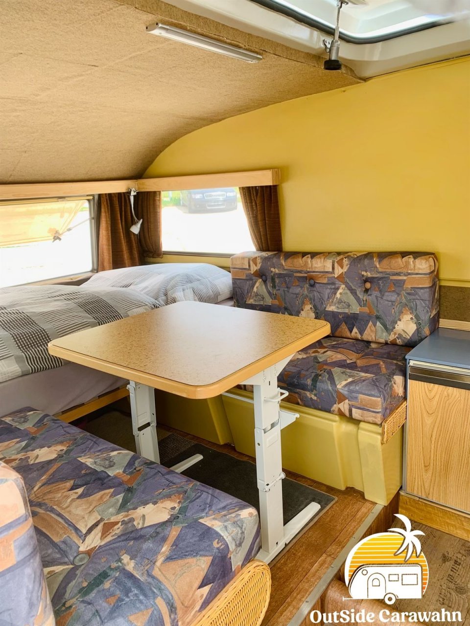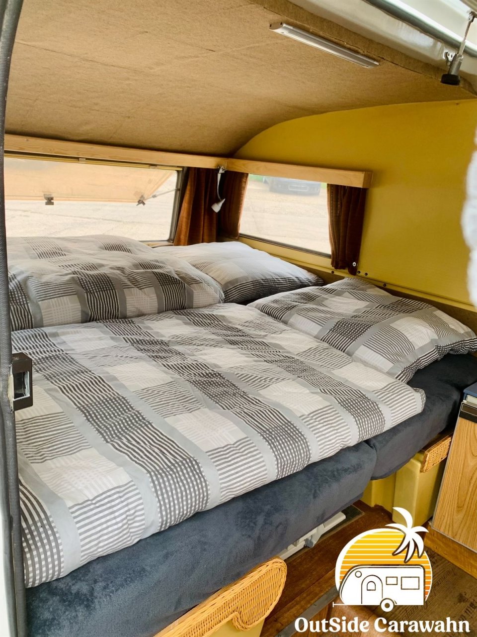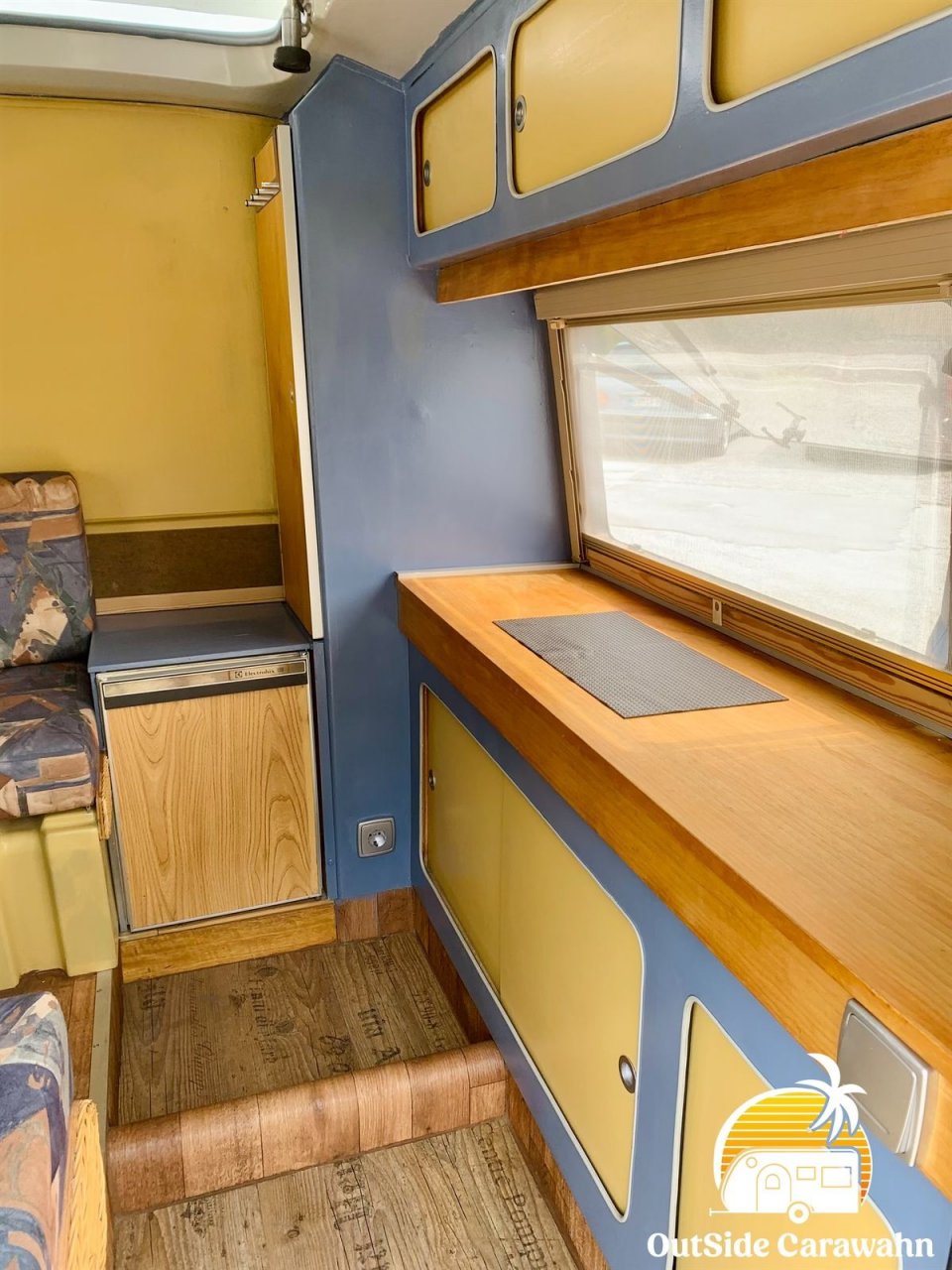 - Abwaschutensilien - Ausstelldach + Fliegennetz - Ausstellfenster vorne und hinten mit Insektenschutz u. Verdunklungsrollo (aus den 90igern) - Kuehlschrank (Landstrom) - Landstromanschluss und Anschlusskabel - Sitzbank und Tisch (Umbaubar zum Bett) - XXL Bett Liegeflaeche 190x190 - Außenklappen Links und Rechts Optional zu buchbar : - Küchen & Campingpaket: Geschirr, Besteck, Töpfe, Einzelkochplatte, Campingtisch + 2 Stühle : Einmalig 10 € pro Buchung |