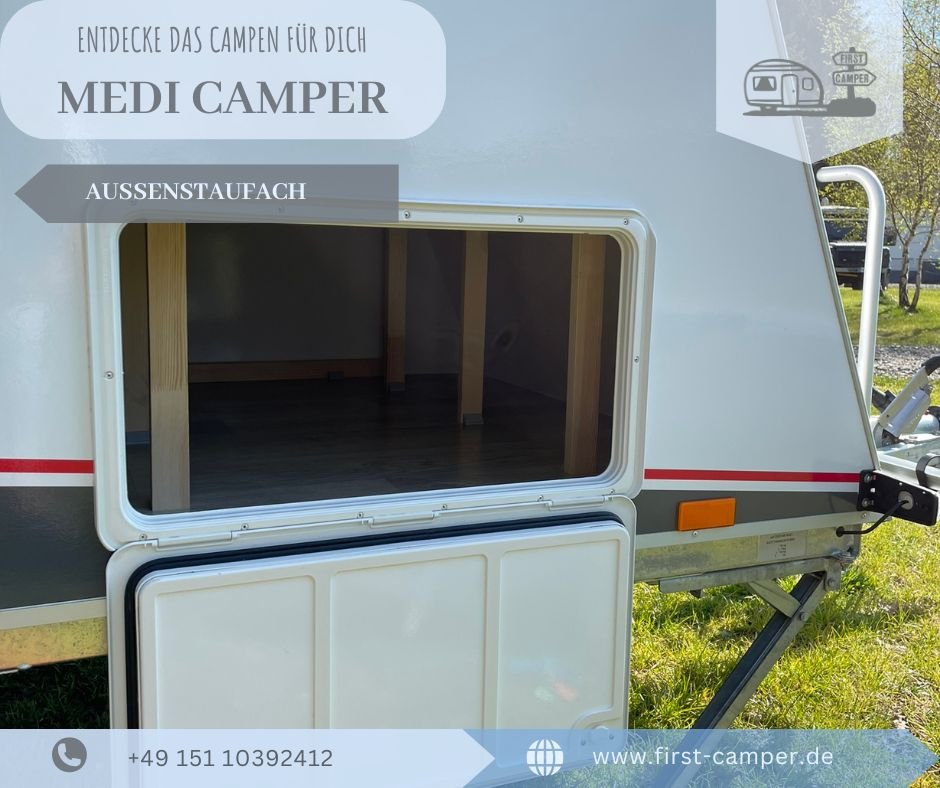 ENTDECKE DAS CAMPEN FÜR DICH Unser kompakter und komfortabler Wohnwagen für zwei Personen. Mit einem zulässigen Gesamtgewicht von 750 kg ist unser Medi Camper ein Leichtgewicht unter den Wohnwagen und kann mit einem Führerschein der Klasse B gefahren werden. Das bedeutet, dass man mit dem Camper unabhängig und flexibel unterwegs ist, ohne sich um eine zusätzliche Fahrerlaubnisse kümmern zu müssen. In dem großzügigen Innenraum unseres Medi Campers befindet sich eine komfortable Liegefläche von 192 x 150 cm, auf der man sich nach einem ereignisreichen Tag erholen und entspannen kann. Unter dem Bett befindet sich ausreichend Stauraum für all Eure persönlichen Gegenstände und Campingausrüstung. Dabei ist der Stauraum von außen über eine bequeme Seitenklappe zugänglich. Der Innenraum unseres Medi Campers wird durch ein Ausstellfenster, ein Frontfenster und einem Dachfenster mit integriertem Moskitoschutz und Verdunklungssystem optimal belüftet und mit Licht durchflutet. So könnt Ihr stets eine angenehme Atmosphäre genießen, unabhängig von den Wetterbedingungen draußen. In der Küchenzeile befindet sich eine Abwaschgelegenheit und ein separater 1-flammiger Gaskocher. Gerne kann nach Wunsch eine Trockentrenntoilette dazu gemietet werden. SERVICEPAUSCHALE: In der Servicepauschale i.H.v. 59€ sind folgende Leistungen enthalten: Als Leihgabe: 2 Adapterkabel (CEE Stecker), Kabeltrommel oder Verlängerungskabel, Sicherungskeile, Kochgeschirr, Essbesteck, Gläser etc. für 2 Personen, Portabler Gaskocher inkl. 1 Gaskartusche, Abwaschutensilien, Handfeger, Einstiegshilfe, 1 Campingtisch und 2 Stühle, Sonnensegel. Einweisung und Endabnahme. ENDREINIGUNG IST INKLUSIVE Der Wohnwagen wird besenrein vom Mieter zurückgegeben, die Endreinigung übernehmen wir! VERSICHERUNG: Vollkasko-Versicherung mit 500€ Selbstbeteiligung je Schadensfall Teilkasko-Versicherung mit 500€ Selbstbeteiligung je nach Schadensfall Haftpflichtversicherung mit pauschal 100 Mio. € Deckungssumme (Personenschaden mit max. 15 Mio. € pro Person) KAUTION: 500€ sind bis zu 7 Tagen vor Reiseantritt zu überweisen. Wird das Fahrzeug ohne Mängel zurückgegeben wird die Kaution zurückerstattet. SONSTIGE KOSTEN: Schäden oder Unfall 500€ Selbstbeteiligung je Schadensfall Außenreinigung bei starker Verschmutzung 45€ |