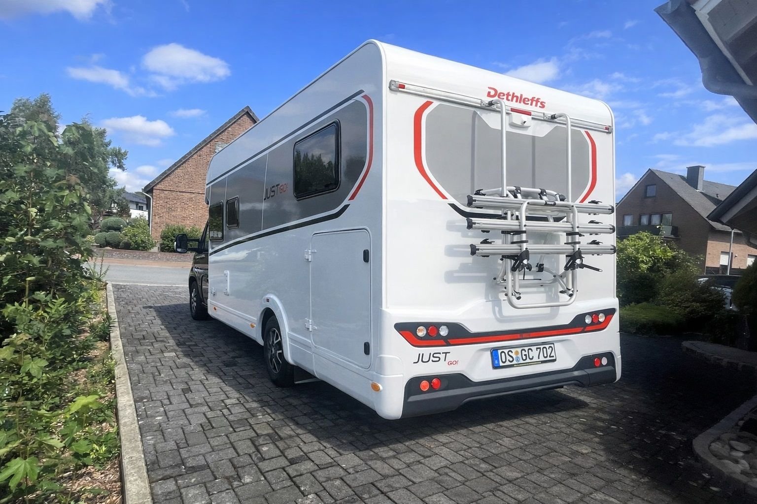 Der Dethleffs JUST Go T 6815 - Sondermodell Active - ist mit einem Fahrradträger und einer Markise ausgestattet. Für das Entertainment-Programm sorgt ein 22 Zoll TV. Die Rückfahrkamera und die große Heckgarage machen deinen Urlaub besonders entspannt, auch wenn du zum ersten Mal ein Wohnmobil fahren solltest.