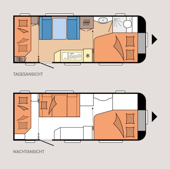 | Sitz- und Schlafgelegenheiten | Einzelbetten Etagenbett Festbett Getrennter Schlafbereich Seitensitzgruppe |