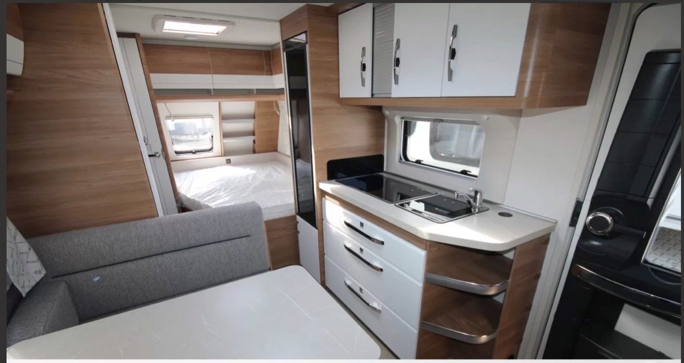...der tolle,vollausgestattete,luxuriöse, FamilienWohnwagen für alle! Tolle, hochwertige Ausstattung ! Capingset mit Stühle / Tisch/ komplettes Küchengeschirr /Stromanschlüsse inkl. Smart Home: HOBBY CONNECT, Steuerung für Bordtechnik über Hobby-Bedienpanel und Bluetooth per App Wohnraum Einsäulenhubtisch Kleiderschrank mit Innenbeleuchtung Hängeschränke mit viel Stauraum und Soft-Close-Klappen Staufach unter Sitzgruppe Küche Kühlschrank DOMETIC, 133 Liter, 10er-Serie, inkl. 12-Liter-Frosterfach, mit Doppelanschlag, Absorbertechnik Kocher und Spüle aus Edelstahl, mit 3-Flammkocher, elektrischer Zündung und zweiteiliger Glasabdeckung Schubladen in Komfortgröße mit Vollauszug, Soft-Close und Push-Lock-Verschlüssen Besteckeinsatz Küchenfensterrollo mit integrierten Steckdosen und Küchenleuchte Schlafen Französisches Bett Maße = 1950 x 1375 / 1085mm Kinderbett, 2-stöckig mit Rausfallschutz und Leiter = 1840 x 730 + 1840 x 700mm Liegefläche Bettumbau = 1876 x 1066mm Unteres Kinderbett klappbar, Unterseite mit Maltafel Federkernmatratzen bei Einzelbetten, französischem Bett und Queensbett Bettaufsteller für Lattenrost mit Gasdruckdämpfer für Fenster Vorhängefenster, ausstellbar, doppelt verglast und getönt Bugfenster mit vollintegriertem Verdunkelungs- und Insektenschutzplissee Kombikassetten mit Verdunkelungs- und Insektenschutzrollo, für alle Fenster (außer Bad) Aufbau Dachhaube DOMETIC SEITZ, Midi-Heki 700 x 500 mm, mit Verdunkelungs- und Insektenschutzplissee im Wohnraum Dachhaube DOMETIC SEITZ, Mini-Heki 400 x 400 mm, mit Verdunkelungs- und Insektenschutzplissee im Schlafbereich Dachhaube DOMETIC SEITZ, Mini-Heki 400 x 400 mm, mit Verdunkelungs- und Insektenschutzplissee im Kinderschlafraum Winterbelüftung für Sitzgruppe, Stauschränke und Betten Eingangstür einteilig, extrabreit mit Dreifachverriegelung, Fenster, Abfalleimer, Staufächern und Insektenschutzplissee im Türrahmen, Ausführung modellabhängig Einstiegsgriff Einstiegstritt Integrierte Vorzeltleiste Regenmarkisenleiste mit Wasserablauf, Bug / Heck Radkästen, wärmegedämmt Radkastenblende mit Gummilippe für Windschürze LED-Vorzeltleuchte Gasflaschenkasten, passend für 2 x 11-kg-Flaschen Stauraumklappe, THETFORD mit Zentralverschluss, 752 x 310 mm, abschließbar Bad Kompaktwaschraum mit integrierter Duschwanne und externem Waschtisch Banktoilette THETFORD Vorhängefenster in Milchglasoptik, ausstellbar Wasser / Gas / Elektrik Abwassertank, 23,5 Liter, rollbar Frischwassertank, 47 Liter Tauchpumpe Gasregler mit Überdrucksicherung (DIN EN 12 864) und Schlauchleitung Gasverteiler in Küchenzeile Bedienpanel für Beleuchtungssystem und Tankanzeige Lichtschalter für Kinder Elektronisch geregelte 12 V- / 350 VA-Stromversorgung FI-Schutzschalter Antennensteckdose mit Koaxialkabelverlegung im Wohnbereich PKW-Anschlussstecker JAEGER, 13-polig Rauchmelder LED-Beleuchtung Leseleuchten in der Sitzgruppe Leseleuchten im Schlafbereich Kinderbettleuchten, dimmbar mit Nachtlicht und USB A/C-Anschlüssen .. Chassis / Sicherheit Buglaufrad Deichselabdeckung Ein-Schlüssel-Schließsystem 3. Bremsleuchte integriert Nebelschlussleuchte Radstoßdämpfer Reifenreparaturset Schwerlaststützen Stützlastanzeige am Buglaufrad Zulassung für Tempo 100 Antischlinger-Kupplung KNOTT Auflaufbremssystem KNOTT ANS mit automatischer Bremsnachstellung Stahlfelgen Silber mit RadzierblendenHeizung / Klima Heizung TRUMA S-3004 mit Warmluftanlage und 12-V-Gebläse Therme TRUMA für Warmwasserversorgung Irrtümer vorbehalten |