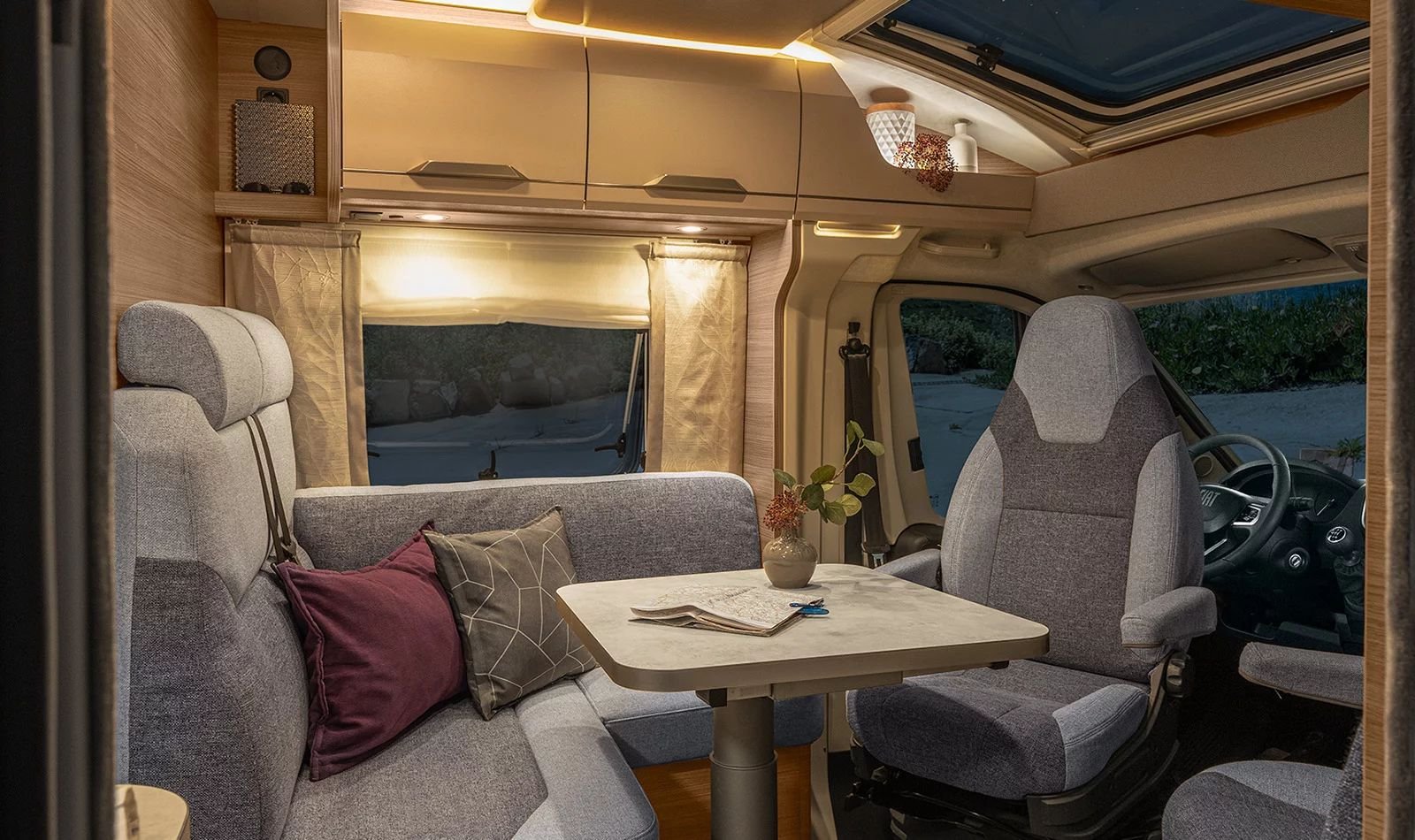 | Fahrzeugausstattung | Heckgarage Lederlenkrad Markise Multifunktionslenkrad Navigationssystem Partikelfilter Servolenkung Zentralverriegelung |