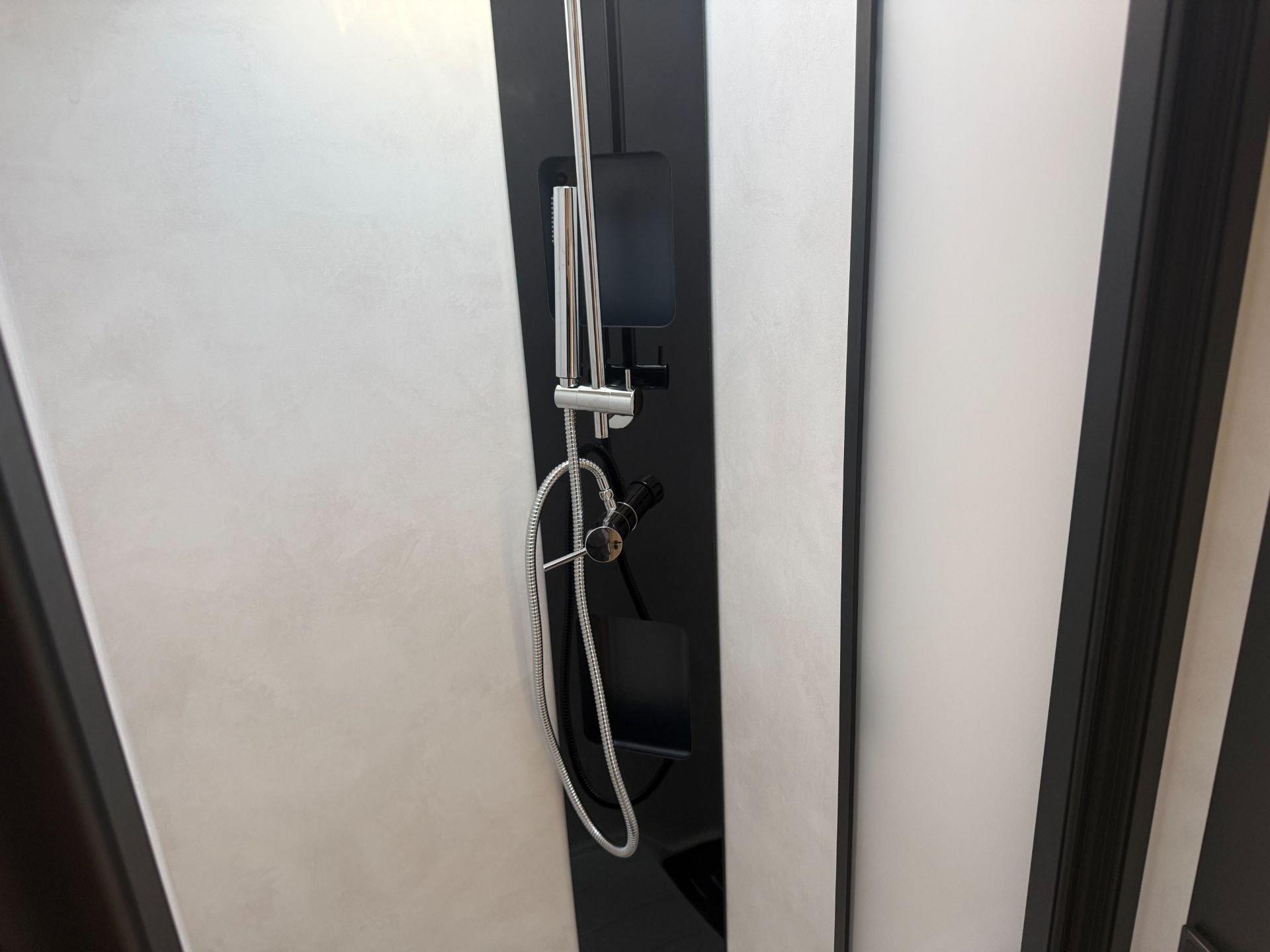 | Bad | Außendusche Dusche Dusche mit Warmwasser, innen Toilette mit Kassette Waschbecken WC |