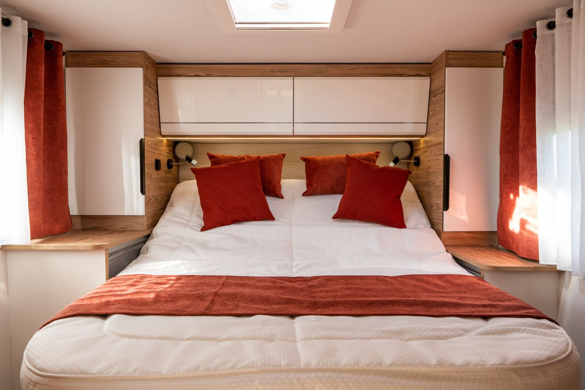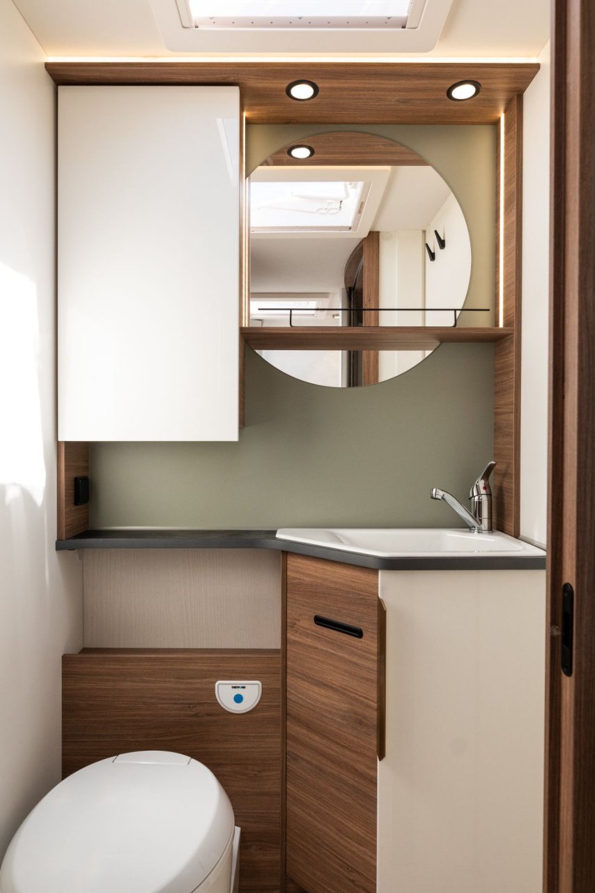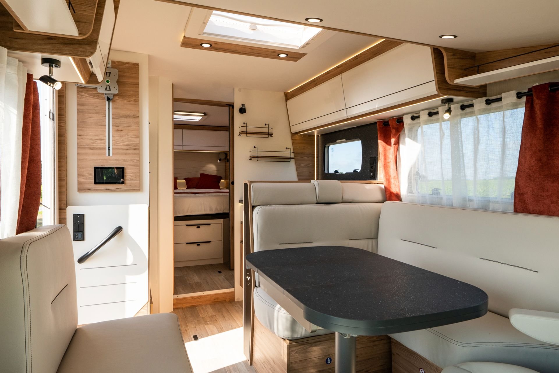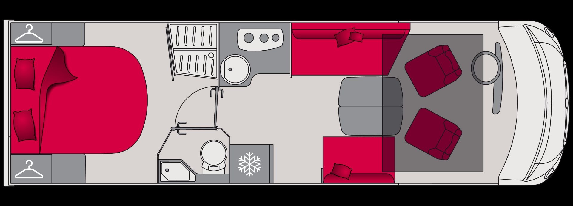 VOLLINTEGRIERT G781FC - mit Queensbett, großer Wohnbereich, VOLLAUSSTATTUNG,2x TV, SAT, Automatik, AHK, Automatik, 4,4t, Dieselheizung, Autark dank Lithium uvm. für bis zu 4 Personen PURER LUXUS Der große Wohnbereich mit gegenüberliegenden Sitzbänken lässt den Raum im G781FC offener wirken. Enge ist für dieses Modell ein Fremdwort. Niemals war es so einfach, um das Queensbett herumzulaufen und zum Hubbett zu gelangen. Al-ko-Fahrgestell, 20 cm hoher Doppelboden, serienmäßige Extras und äußerst komfortable Räume machen Lust darauf, die Welt zu entdecken. WOHNBEREICH Im G781FC befindet sich eine komfortable, von der Nasszelle abgetrennte Dusche. Schiebetüren zum Wohn- und Schlafbereich hin sorgen für Privatsphäre und Ungestörtheit. Ein Ganzkörperspiegel rundet die Ausstattung des vornehmen Badezimmers ab. KÜCHE Die Küche verfügt über eine große Arbeitsfläche, einen 160-l-Kühlschrank, einen Hochleistungsherd mit 2 Kochfeldern und zahlreiche Schubladen und Unterschränke. Diese hochwertige Ausstattung sorgt für mehr Komfort im Alltag. BAD UND WC Zwei große Sitzbänke aus Leder stehen einander in diesem sorgfältig gestalteten Wohnbereich gegenüber. In der Mitte des großen Raums befindet sich ein breiter Klapptisch für 5 Personen. Die mit Stoff verkleidete Decke und die vielen LED-Leuchten tragen zur gemütlichen Atmosphäre des Raums bei. ZIMMER Im Schlafbereich befindet sich ein 150 x 190 cm großes Queensbett. Rund um das Bett haben Sie viel Bewegungsfreiheit, um die Wandschränke und den kleinen Frisiertisch leicht erreichen zu können. Noch mehr Stauraum bieten die Regale am Kopfende. Das Kopfteil lässt sich elektronisch hochfahren. Außerdem befinden sich zwei Lautsprecher und ein TV-Anschluss im Raum. FAHRERHAUS Der G781FC basiert auf dem Fiat Ducato Euro6D CCS mit einem Al-ko-Fahrgestell mit Spurverbreiterung. Der tiefliegende Sitz und die voneinander unabhängigen Räder sorgen für eine hohe Stabilität. Machen Sie es sich in den Sitzen von Aguti bequem und genießen Sie den Fahrkomfort sowie die extrem gute Sicht, die die Vorderseite bietet. AUSSEN Mit seinem schönen Design, seinem hagelfesten Dach und seinen Aluminiumwänden hat dieser Vollintegrierte viele Vorzüge. Die Isolation der äußerst strapazierfähigen Konstruktion verfügt über ein Zertifikat der Klasse 3. Sein durchgehender 20 cm hoher Doppelboden isoliert und bietet zusätzlichen Stauraum. In der durchgehenden, abgetrennten Heckgarage können Sie Ihr Gepäck sicher verstauen. Die Garagentüren sind mit Druckschlössern mit Doppeldichtung ausgestattet und dadurch wasser- und luftdicht. TECHNISCHE INFORMATIONEN Länge 7.89 m Breite 2.3 m Plätze laut Zulassung 4 Schlafplätze 4+2 optional Essplätze 5 Volumen Seitenfach 3250 l Nutzlast 1270 kg Technisch zulässige Gesamtmasse 4500 kg Stehhöhe in der Dusche (in cm) 188 |