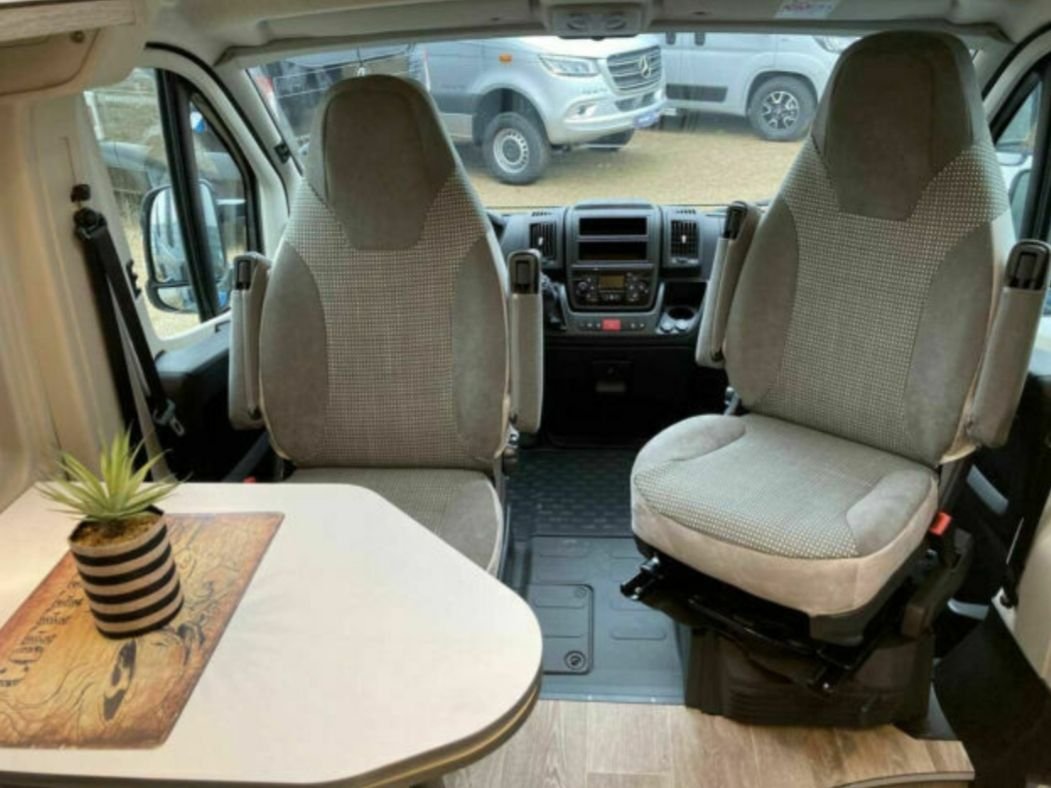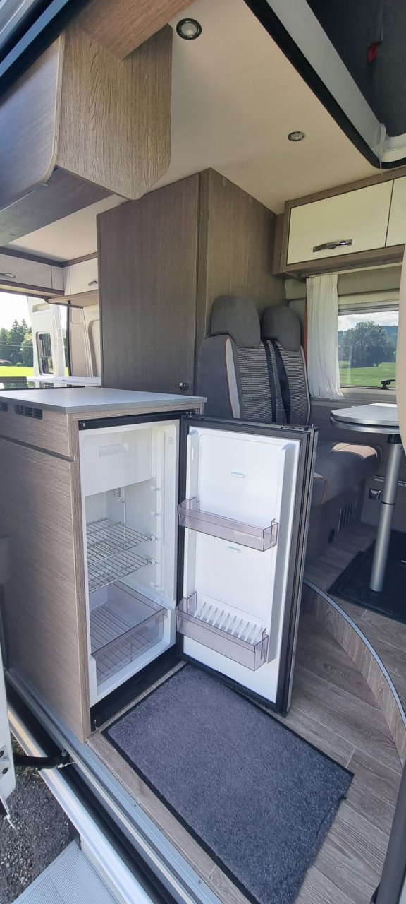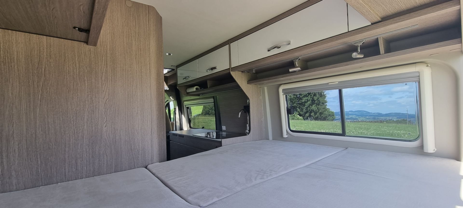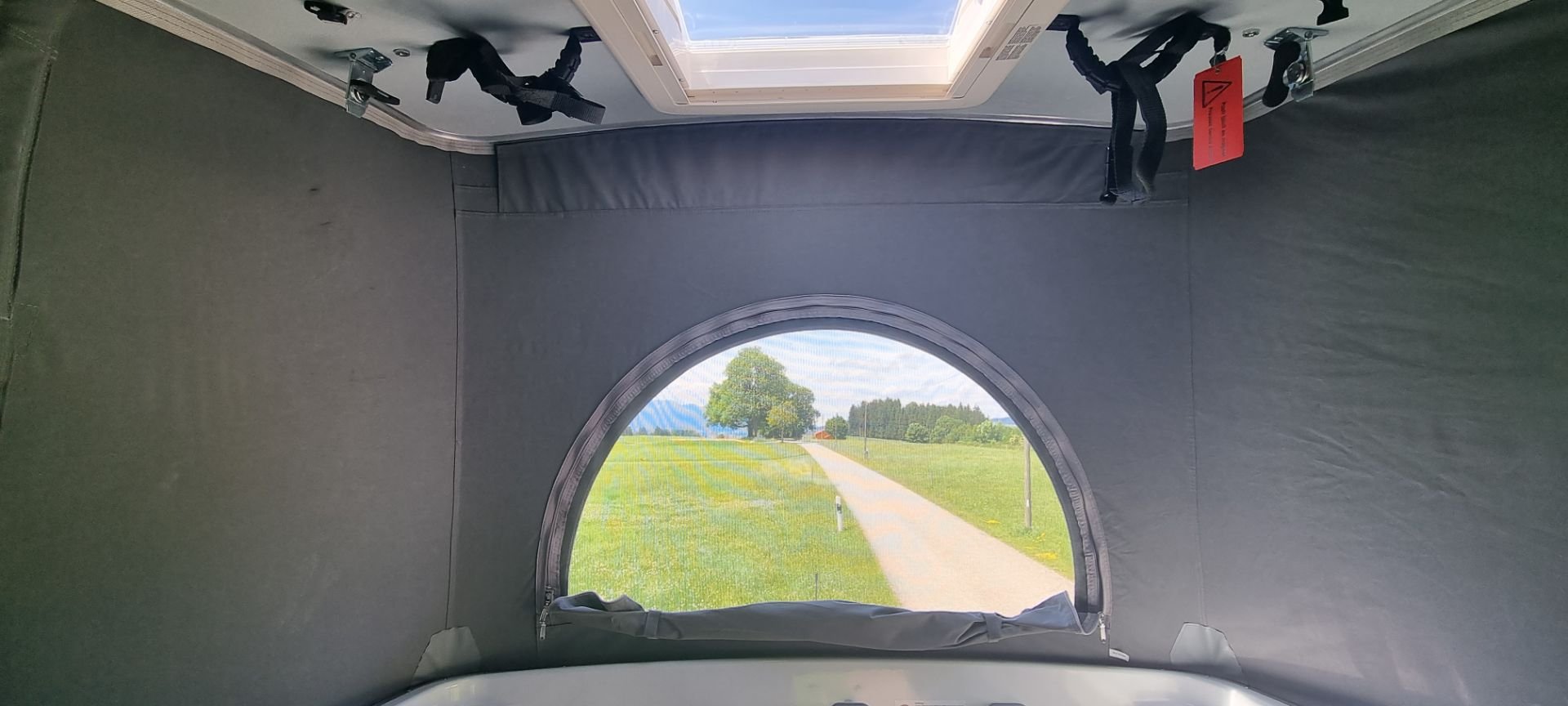 | Fahrzeugausstattung | Heckgarage Lederlenkrad Markise Multifunktionslenkrad Navigationssystem Servolenkung Zentralverriegelung |