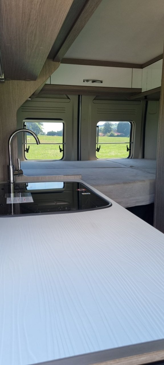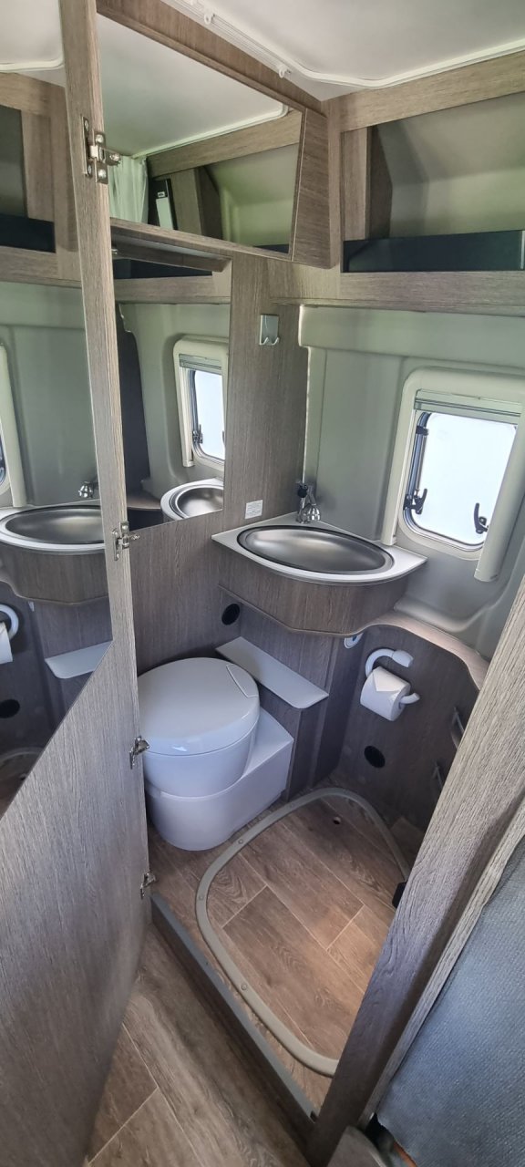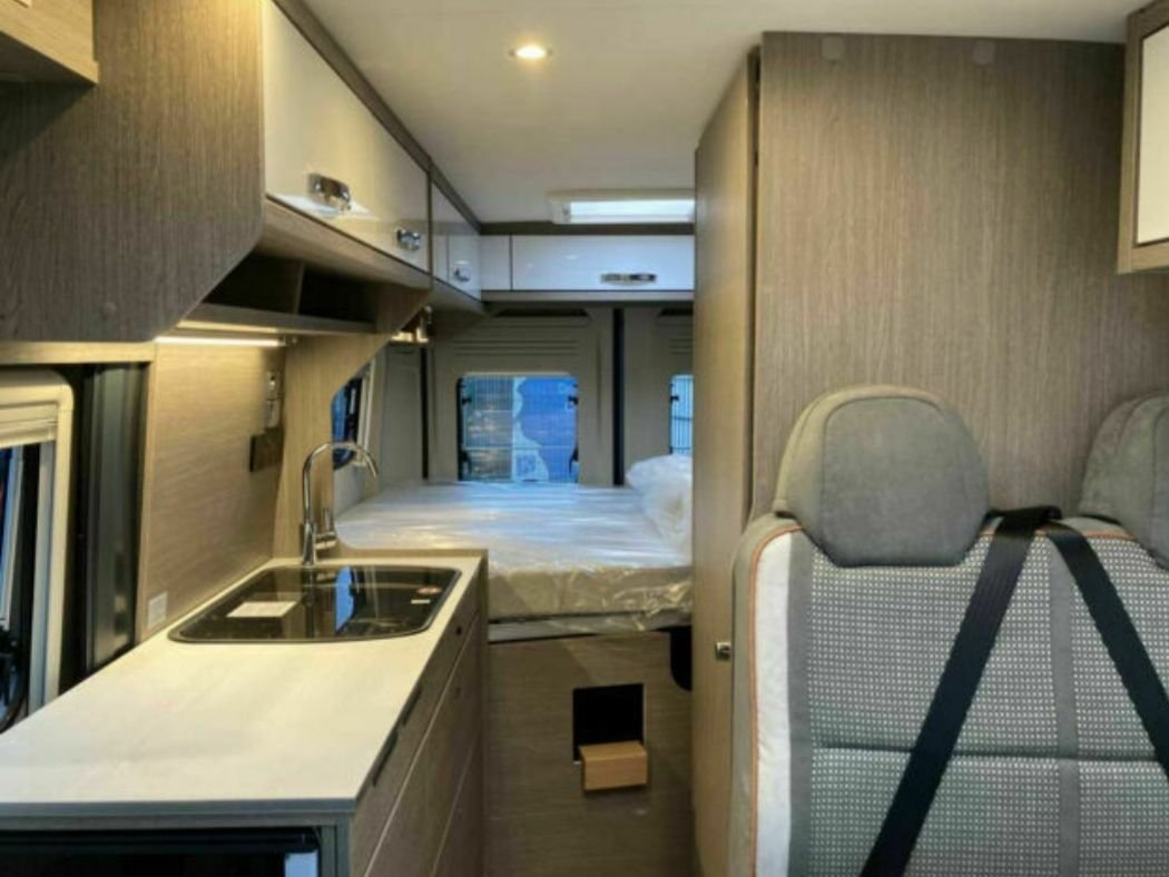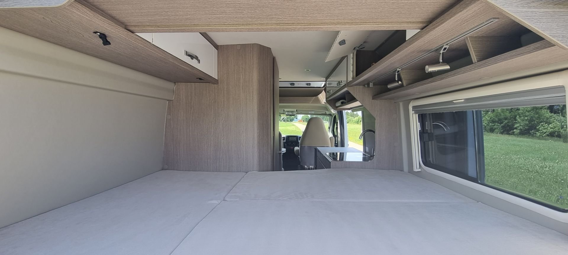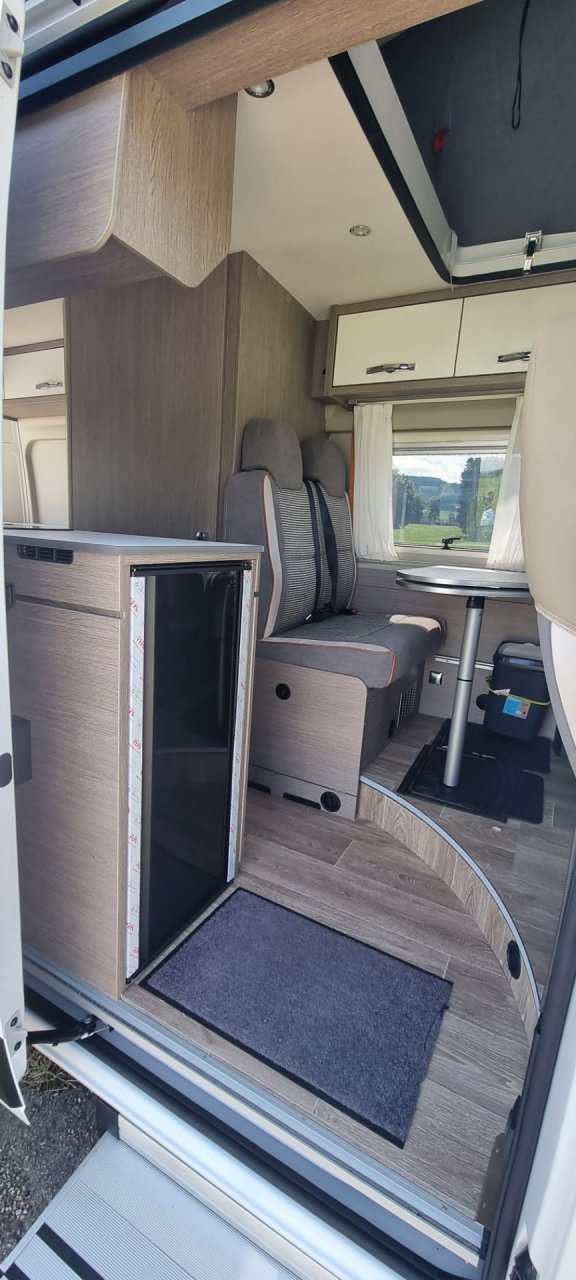 | Fahrzeugausstattung | Heckgarage Lederlenkrad Markise Multifunktionslenkrad Navigationssystem Servolenkung Zentralverriegelung |