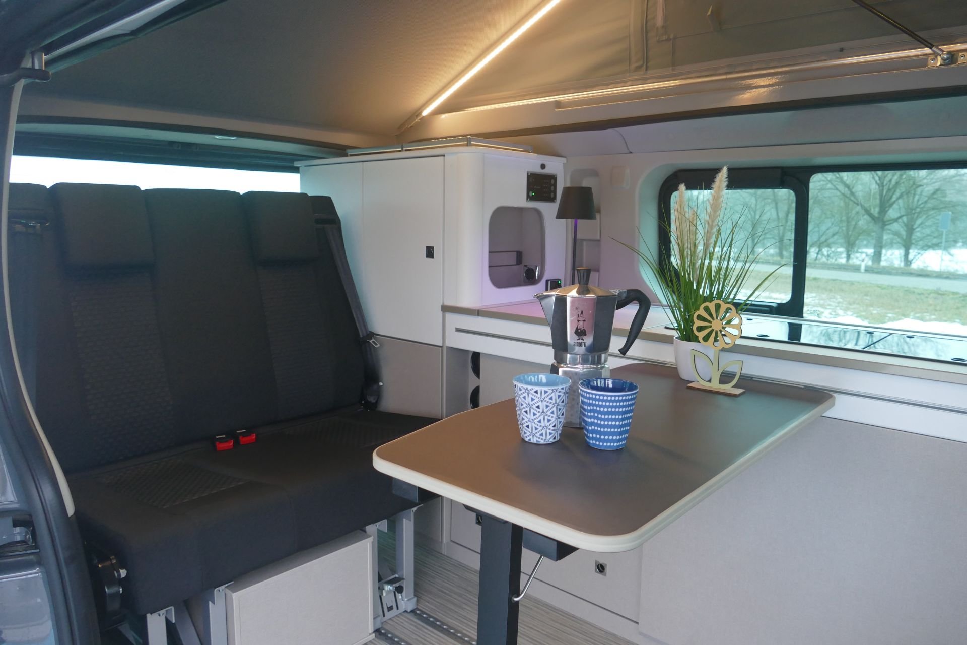 | Fahrzeugausstattung | 230V-Steckdosen und 12V-Anschlüsse Drehsitze Elektrische Außenspiegel Elektrische Fensterheber ISOFIX LED-Scheinwerfer Lederlenkrad Lichtsensor Markise Multifunktionslenkrad Navigationssystem Partikelfilter Regensensor Servolenkung Zentralverriegelung |
