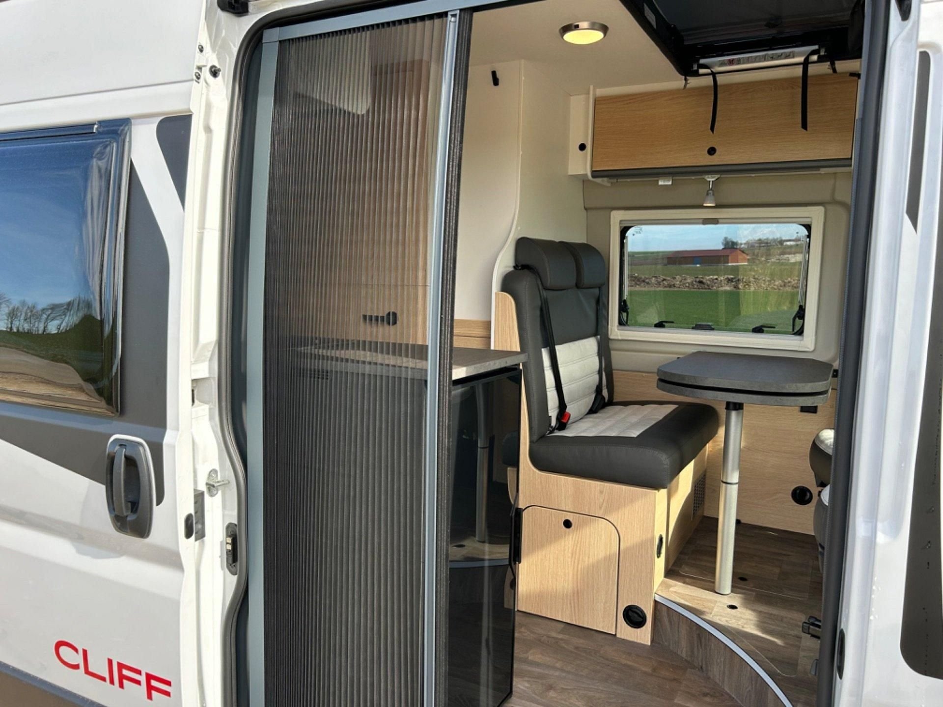 | Fahrzeugausstattung | Heckgarage Lederlenkrad Markise Multifunktionslenkrad Servolenkung Zentralverriegelung |