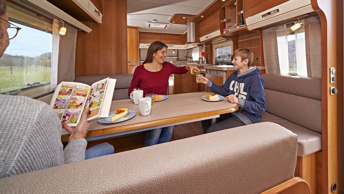 Oscar ist der perfekte Wohnwagen für die große Familie, 6 Schlafplätze, Stockbetten, Markise mit Seitenteilen, TV, Outdoor Tisch, Stüle mit Auflagen, Teppich. Ausgestattet mit allem was zum Camping benötigt wird. |