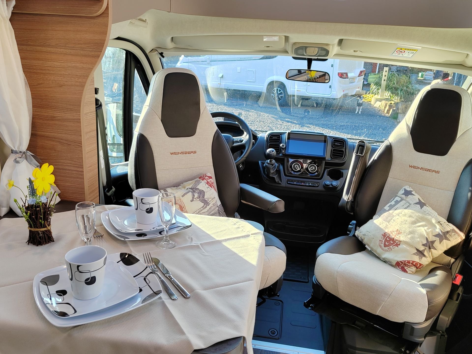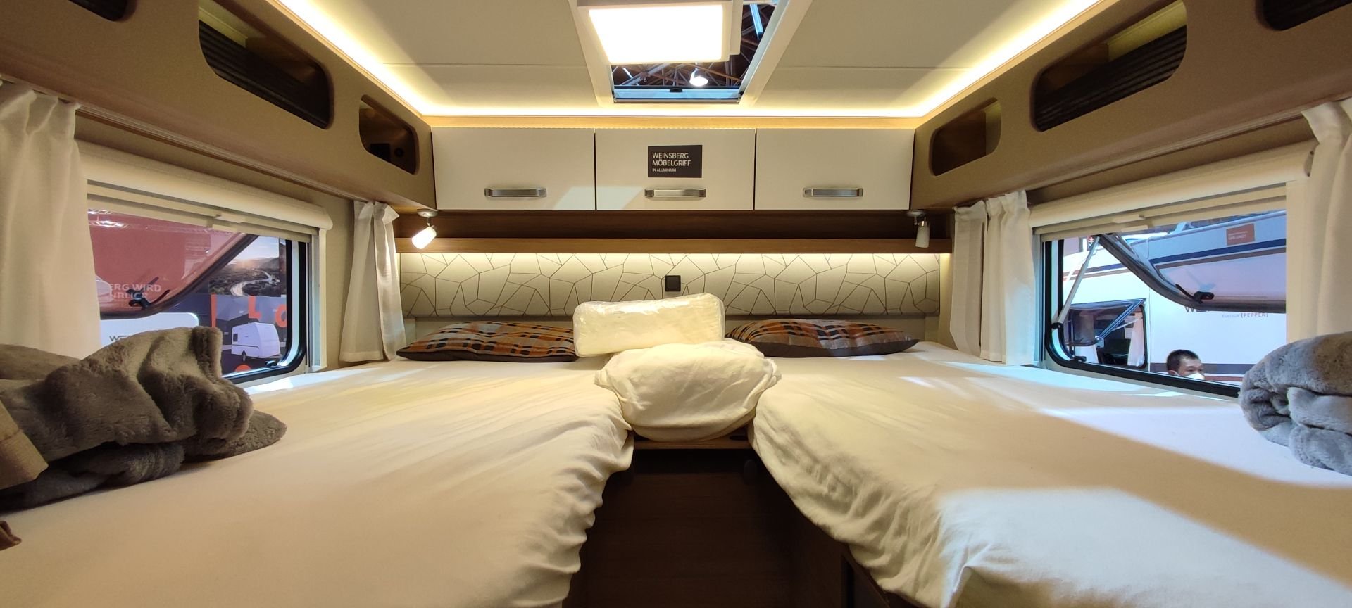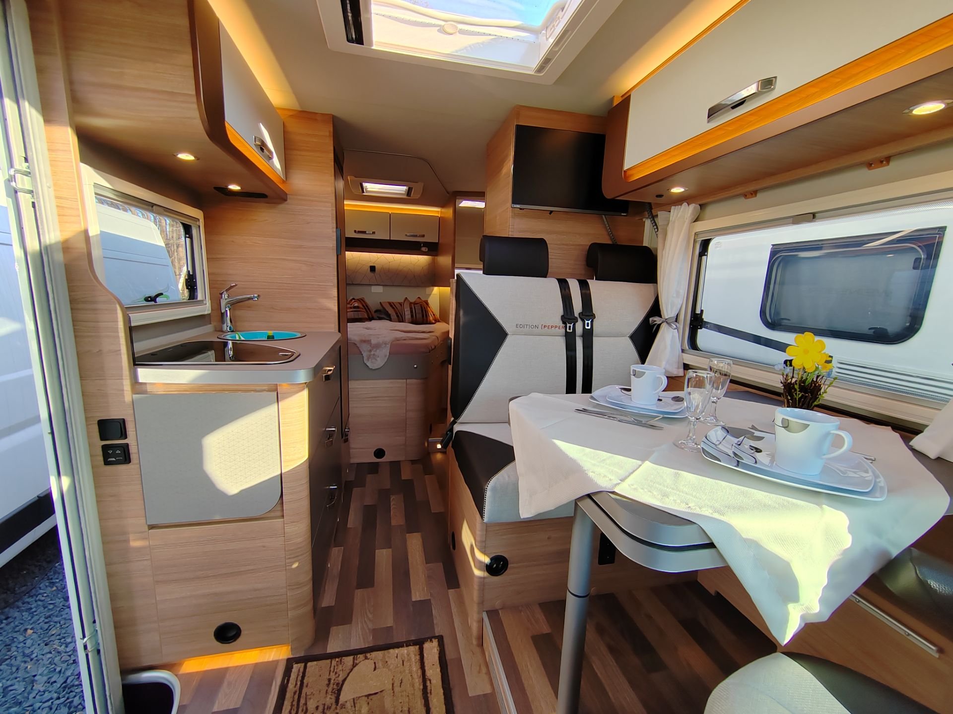 Der Pepper 1 Klima ist unser Pepper mit Einzelbetten und Heckgarage. Auf Wunsch kann die fest verbaute Klimaanlage genutzt werden, was Mensch und Hund immer sehr gut tut |