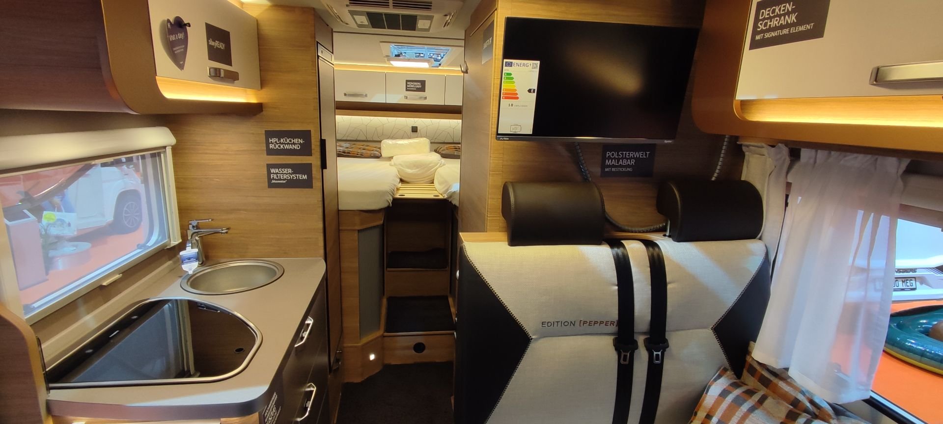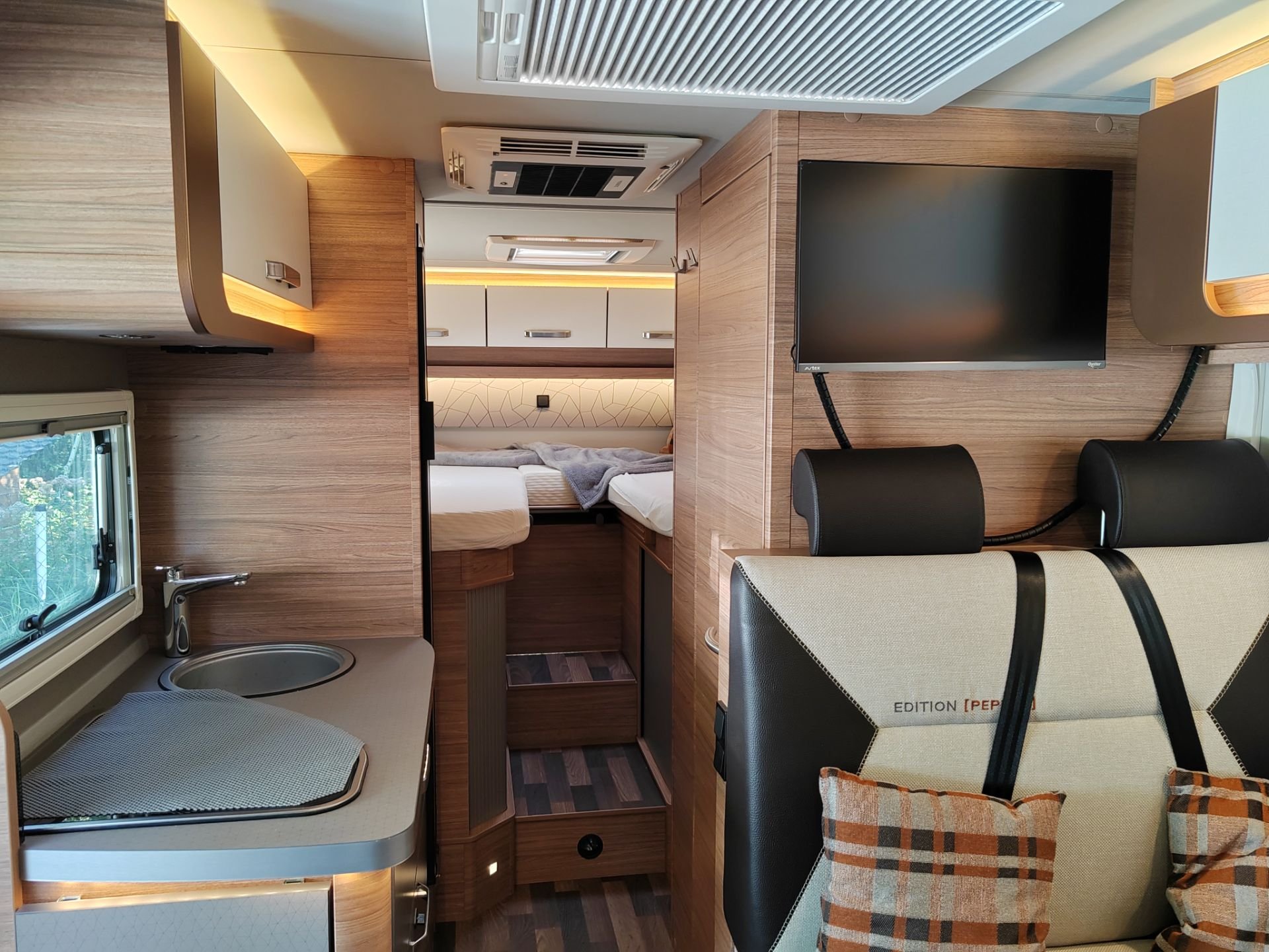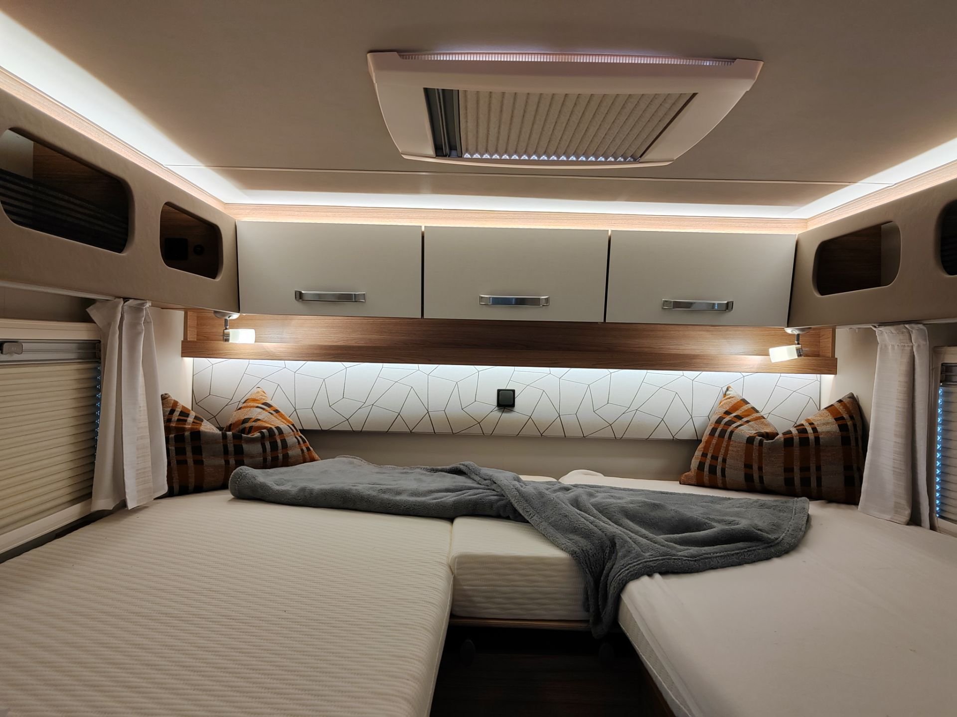 Der Pepper 1 Klima ist unser Pepper mit Einzelbetten und Heckgarage. Auf Wunsch kann die fest verbaute Klimaanlage genutzt werden, was Mensch und Hund immer sehr gut tut |