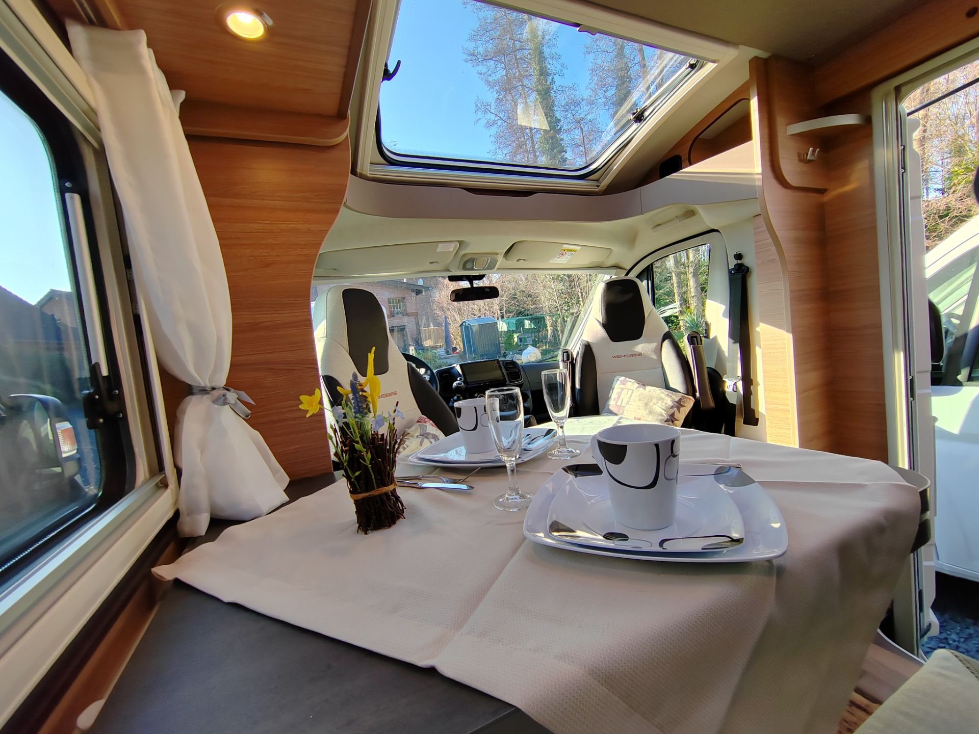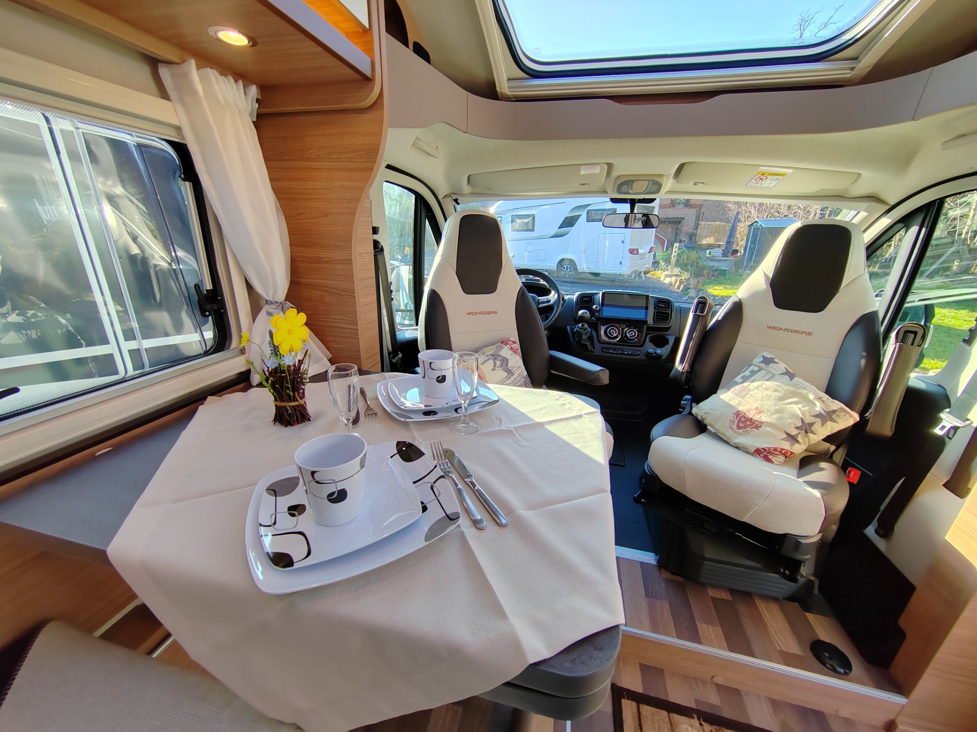 | Fahrzeugausstattung | Heckgarage Lederlenkrad Markise Multifunktionslenkrad Navigationssystem Regensensor Servolenkung Zentralverriegelung |
